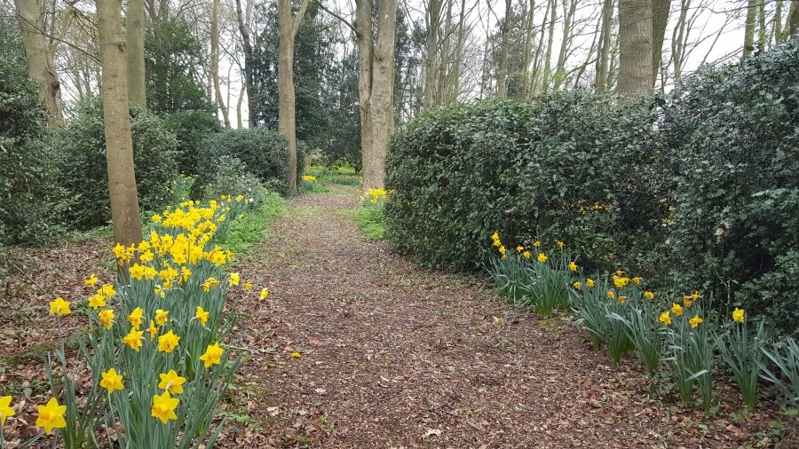 In early spring the woodland comes to life through the presence of Aconites, Snowdrops and Daffodils, which are planted alongside the paths.