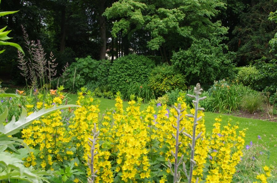 The wood is linked to woodland beds, which have been replanted with shrubs, grasses and perennials. They are widely planted with bulbs to provide extra interest to the borders.